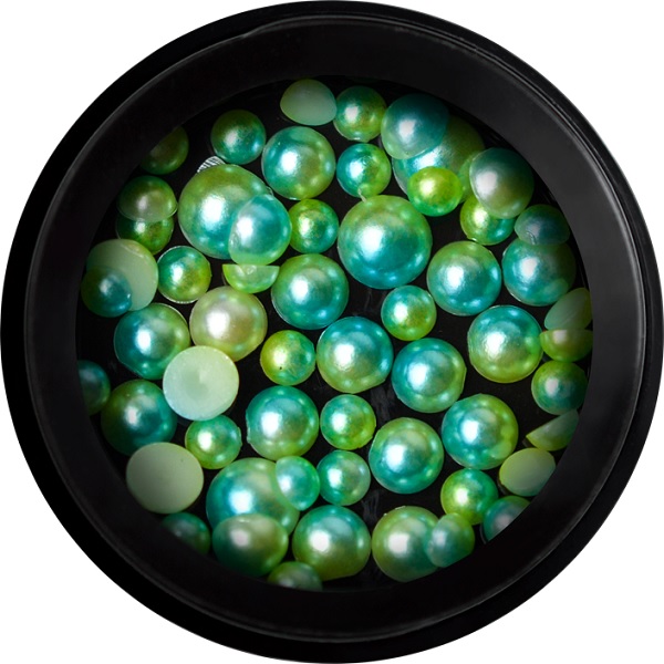 Um mix de pérolas com uma face lisa, disponível em diversos tamanhos e cores.