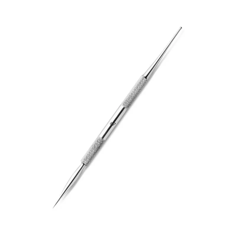 Caneta para nail art com duas pontas, uma pontiaguda e outra arredondada. Adequada para trabalhar em unhas naturais e para retoques com tinta acrílica, gel colorido e acrílico.