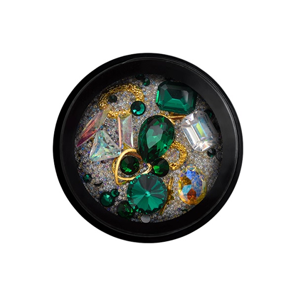 Mistura de cristais e contas de diversos tamanhos e formas. Ilustração de cores, apenas orientativa - os tons exibidos podem variar em relação ao tom real.