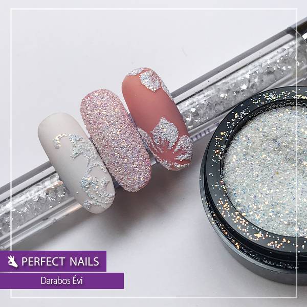 Pó de glitter prateado, finamente moído, para designs de superfície e encapsulados. Estes pós podem ser espalhados sobre gel superior ou gel de cor, para desenhos com efeito açucar, ou encapsulados, usando gel de construção, acrílico, Liquid Stone e Glue Gel. DICA PERFEITA - estes pós podem ser misturados ao gel de contrução ou pó acrílico, antes de criar o volume das unhas, para um design encapsulado. (Ilutração de cores meramente orientativa).